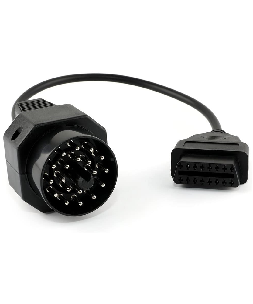 Cable convertidor que permite la conexión entre el conector OBD1 redondo de 20 pines y el conector OBD2 de 16 pines. Es necesario para el diagnóstico y la codificación de modelos fabricados antes del año 2001 que cuentan con puerto OBD1 redondo bajo el capó. Puede utilizarse junto con un cable OBD2 para conectar el vehículo a un ordenador o a cualquier escáner OBD2 disponible en el mercado.